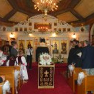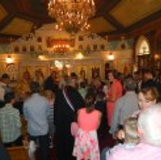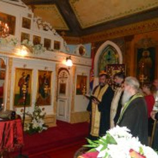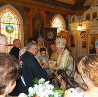 With the blessing of His Grace our Bishop Irinej of the Eastern Diocese of the Serbian Orthodox Church, our Parish celebrated its 100th Anniversary starting from Friday, October 7th through Sunday, October 9th this 2016th Year of our Lord. On Friday, His Grace Bishop Irinej, after the Vesper service, was greeted with bread and salt by the youngest members of our parish, dressed in traditional Serbian costume. His Grace then served the Parastos (Memorial Service) for the departed members of this Parish and later blessed the food in the Church Hall prepared for all who came to participate in this event. Concelebrating with His Grace were Presbyter Borjan Vitanov parish priest, Protopresbyter-stavrophor Aleksandar Vlajkovic of Boston, Dean of the Washington Deanery, Protopresbyter-stavrophor Stevan Rocknage of McKeesport, who offered a homily for the edification of the faithful, Protopresbyter-stavrophor Michael Slovesko of the Carpatho-Russian Eparchy and long-time celebrant in Lebanon, Protopresbyter-stavrophor Michael Varvarelis of the Greek Orthodox Archdiocese, Protopresbyter-stavrophor Stephen Vernak of the Orthodox Church in America, Protopresbyter Milorad Orlic of Philadeplphia, and Presbyter Christopher Rocknage of Steelton.