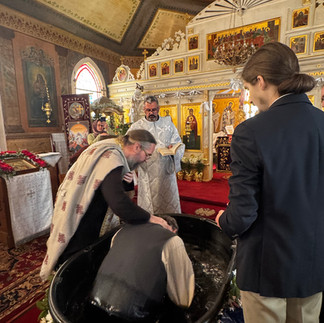 Having been buried with Christ in the waters, he has now risen with Him, clothed in the garment of incorruption, and sealed with the gift of the Holy Spirit. From this day forward, he is called to live not for himself, but for Him Who died and rose again for our salvation.