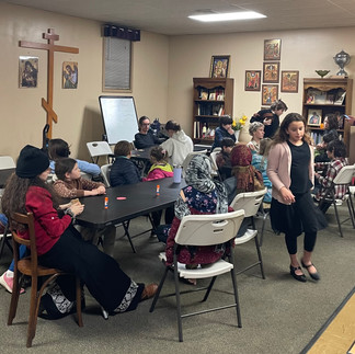 Glory to God, on December 16th, 2023 we had our Children's/St Nicholas winter retreat. After the opening prayer, Fr. Borjan V. talked with the children about St Nicholas and the meaning of the Icon of Nativity of Christ. The children made some Christmas decorations and after the Vespers service, venerated the holy relics of Holy Great Martyr Barbara, the Hozevit's Martyrs and the relics of St Luke the Physician of Simferiopol and Crimea.